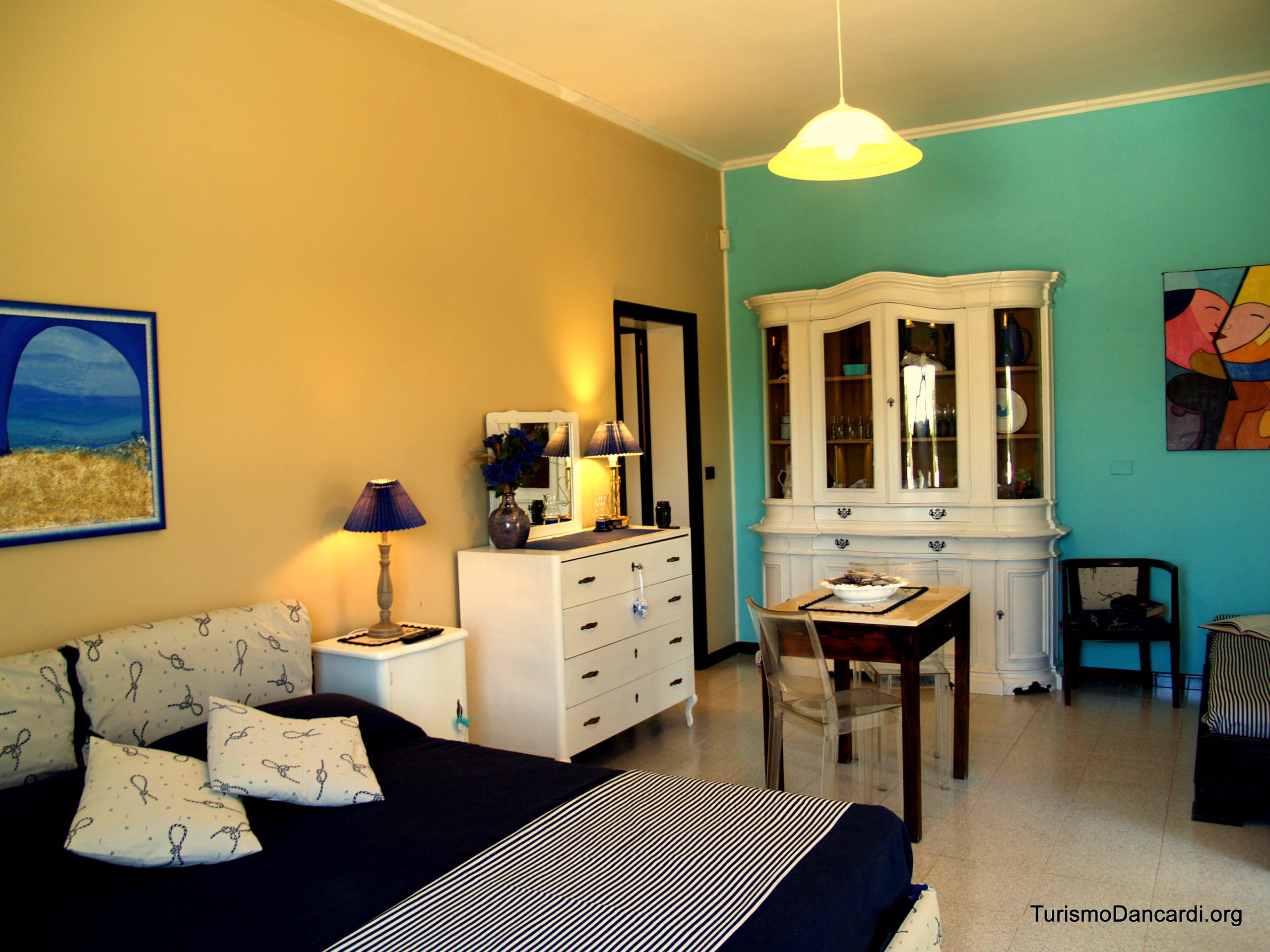 Un monolocale composto da camera da letto, bagno, cucinino esterno, una comoda veranda attrezzata, rifugio sicuro da stress e problemi, dove poter mangiare e rilassarsi contemplando un vasto uliveto e lontani dai rumori della città.